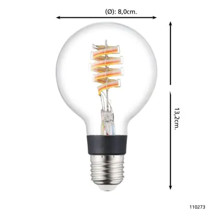 Die Eglo Connect.Z Smart LED Globe E27 Fadenlampe Klar 4.9W 400lm - 830 Warmweiß + RGB | Dimmbar - Ersatz Für 40W ist eine effiziente E27 LED-Lampe mit Retrodesign und der perfekte Ersatz für Ihre konventionellen 40W Lampen mit E27. Zudem strahlt sie Licht in der Farbtemperatur 3000K - Warmweiß + RGB aus und punktet durch eine lange Lebensdauer.