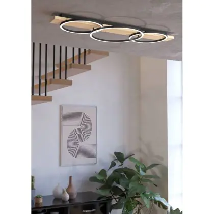 Eglo Deckenleuchte Boyal Holz Schwarz, Braun 24W 3400lm - 830 Warmweiß