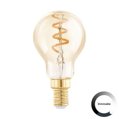 Die Eglo LED Kugel E14 Fadenlampe Messing 4W 145lm - 820 Extra Warmweiß | Dimmbar - Ersatz Für 15W ist eine effiziente E14 LED-Lampe mit Retrodesign und der perfekte Ersatz für Ihre konventionellen 15W Lampen mit E14. Zudem strahlt sie Licht in der Farbtemperatur 2000K - Extra Warmweiß aus und punktet durch eine lange Lebensdauer.