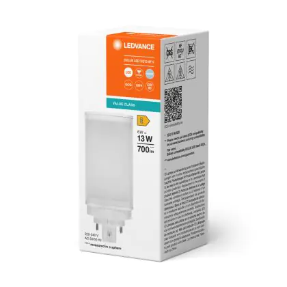 Die Ledvance DULUX-TE LED 6W - 840 Kaltweiß | Ersatz Für 13W ist eine effiziente LED-Energiesparlampe und der perfekte Ersatz für Ihre konventionelle Kompaktleuchtstofflampe. Zudem strahlt das Produkt Licht in der Farbtemperatur 4000K - Kaltweiß aus und punktet durch eine lange Lebensdauer.