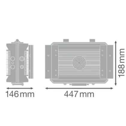 Dies ist ein Netzteil für das Floodlight Max von Ledvance. Die Verbindung des LED-Moduls funktioniert mittels vorinstalliertem Steckverbinder mit einem Schnellverschluss. Der Anschluss ist extrem robust und langlebig.