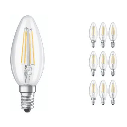 Beschreibung Mehrfachpackung 10x Ledvance CLASSIC LED E14 Kerze Fadenlampe Klar 4W 470lm - 840 Kaltweiß | Ersatz für 40W