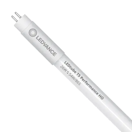 Die Mehrfachpackung 10x Ledvance LED Röhre T5 Performance (Mains AC) High Output 26W 4000lm - 865 Tageslichtweiß | 115cm - Ersatz Für 54W ist eine effiziente LED-Röhre und der perfekte Ersatz für Ihre konventionelle Leuchtstoffröhre mit 54W und einem G5. Die Röhre hat eine Länge von 1149 mm und einen Durchmesser von 19 mm. Zudem strahlt das Produkt Licht in der Farbtemperatur 6500K - Tageslichtweiß aus und punktet durch eine lange Lebensdauer.