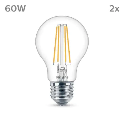 Die Mehrfachpackung 2x Philips Glühbirne LED E27 Birne Fadenlampe Klar 7W 850lm - 840 Kaltweiß ist eine effiziente E27 LED-Lampe mit Retrodesign und der perfekte Ersatz für Ihre konventionellen W Lampen mit E27. Zudem strahlt sie Licht in der Farbtemperatur 4000K - Kaltweiß aus und punktet durch eine lange Lebensdauer.