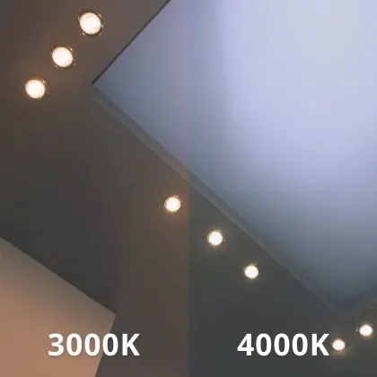 Der LED-Deckenspot kommt mit der Farbtemperatur 4000K - Kaltweiß daher. Als Faustregel gilt: Je niedriger der Kelvinwert, desto gemütlicher wirkt das Licht.