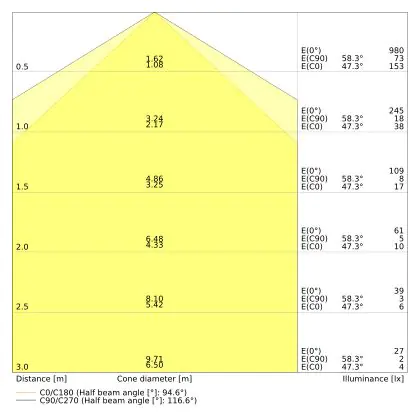 - Lichtfarbe: Warmweiß (3.000 K)