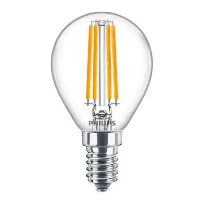 Die Philips Corepro LED Lustre E14 Kugel Fadenlampe Klar 6.5W 806lm - 840 Kaltweiß | Ersatz für 60W ist eine effiziente E14 LED-Lampe mit Retrodesign und der perfekte Ersatz für Ihre konventionellen 60W Lampen mit E14. Zudem strahlt sie Licht in der Farbtemperatur 4000K - Kaltweiß aus und punktet durch eine lange Lebensdauer.