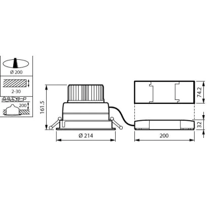 Beschreibung Philips LED Downlight LuxSpace Kompakt geringe Höhe DN570B VLC-E 52.8W 6200lm 80D - 830 Warmweiß | 214mm - Aluminium Reflektor - Dali Dimmbar