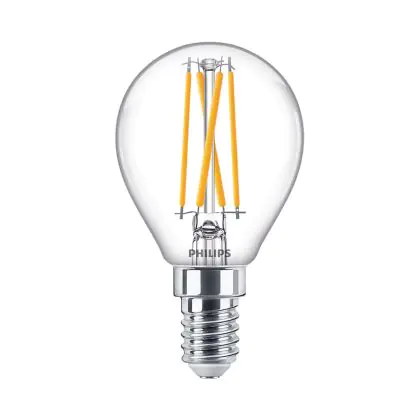 Die Philips Master Value LED Lustre E14 Kugel Fadenlampe Klar 1.8W 340lm - 922-927 Dim To Warm | Höchste Farbwiedergabe - Dimmbar - Ersatz Für 25W ist eine effiziente E14 LED-Lampe mit Retrodesign und der perfekte Ersatz für Ihre konventionellen 25W Lampen mit E14. Zudem strahlt sie Licht in der Farbtemperatur 2200K - 2700K Dim To Warm aus und punktet durch eine lange Lebensdauer.