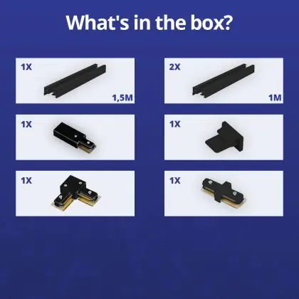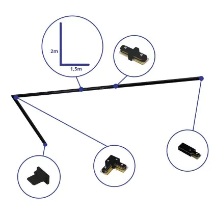 Beschreibung Rail Set 1-Phasen L 1,5 x 2 Meter Schwarz | incl. Abschlusskappe, Stromanschluss und L -Verbinder