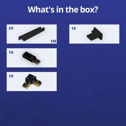 Beschreibung Rail Set 1-Phasen L 1 x 1 Meter Schwarz | incl. Abschlusskappe, Stromanschluss und L -Verbinder